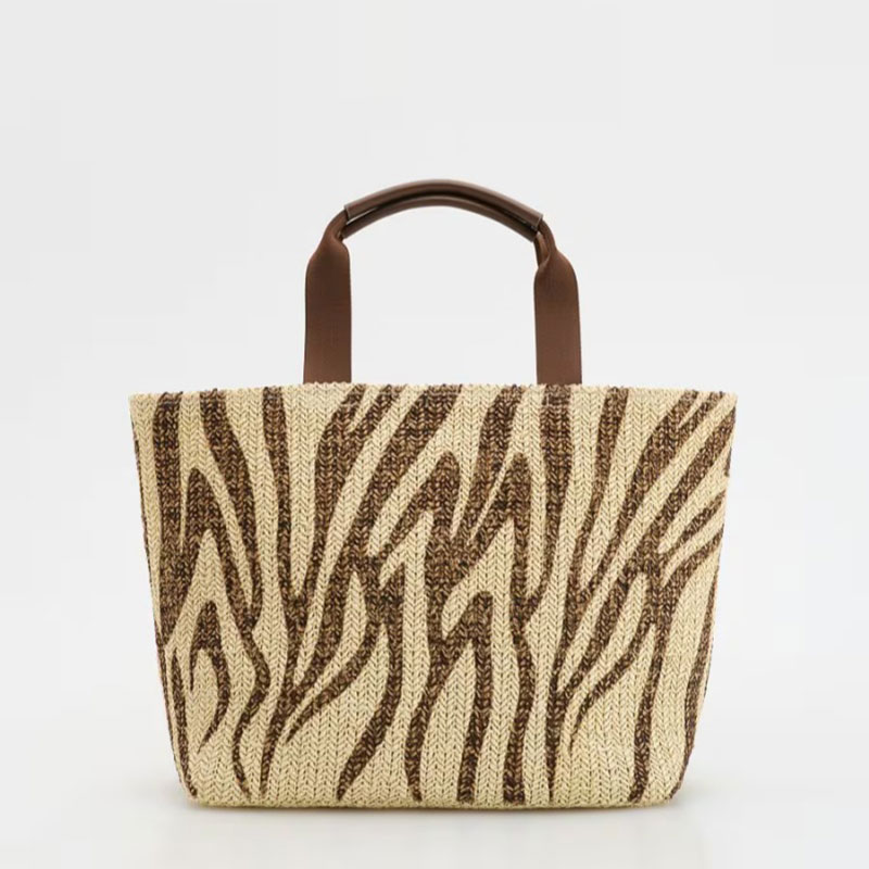 Вместительная пляжная сумка из бумажного шнура с плетением "под зебру", модная повседневная сумка через плечо