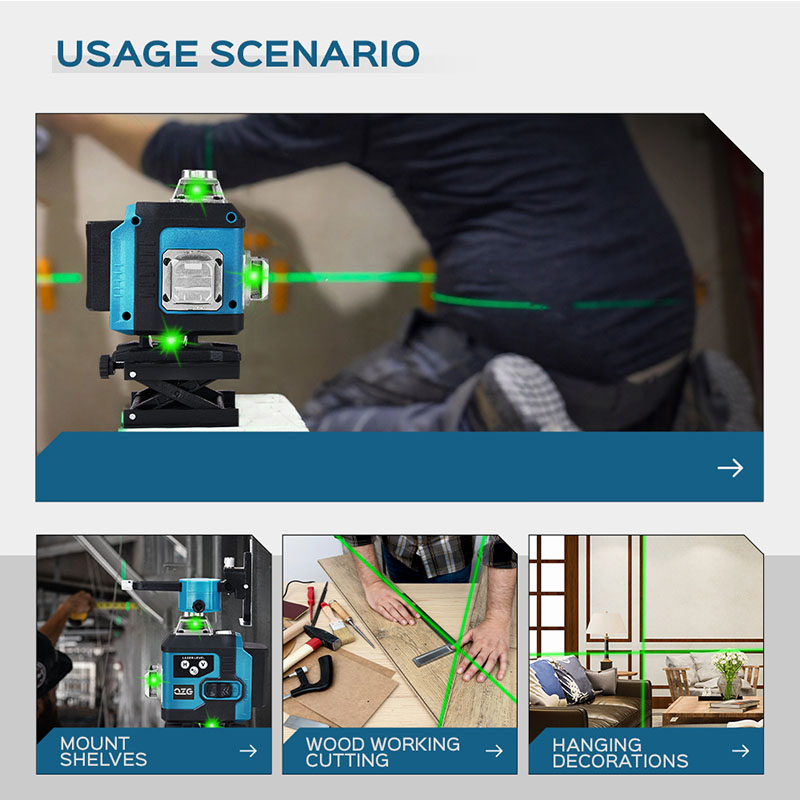 Несколько режимов управления гибки и удобны и могут эффективно использоваться в различных сценариях. Зеленая лазерная линия хорошо видна, что повышает точность работы. Функция автоматического выравнивания снижает количество ошибок при эксплуатации