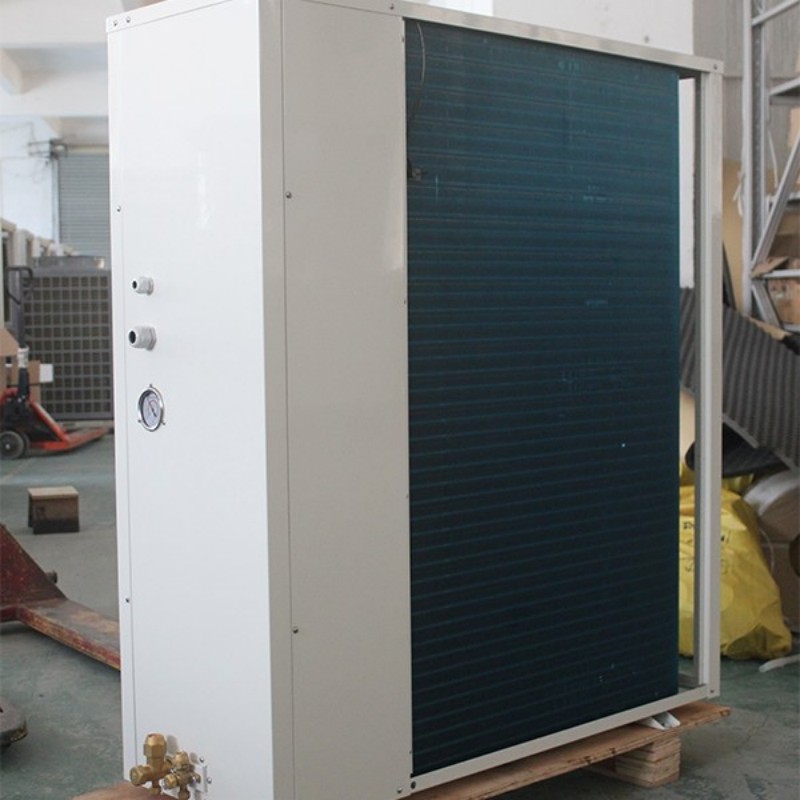 Конструкция отличается низким уровнем шума и повышенной долговечностью: полностью герметичный спиральный компрессор в сочетании с кожухом вентилятора из модифицированного полипропилена обеспечивают уровень шума при работе не более 45 дБ. Двигатель с защитой класса IPX4 и антикоррозийным покрытием адаптирован для эксплуатации в условиях повышенной влажности.