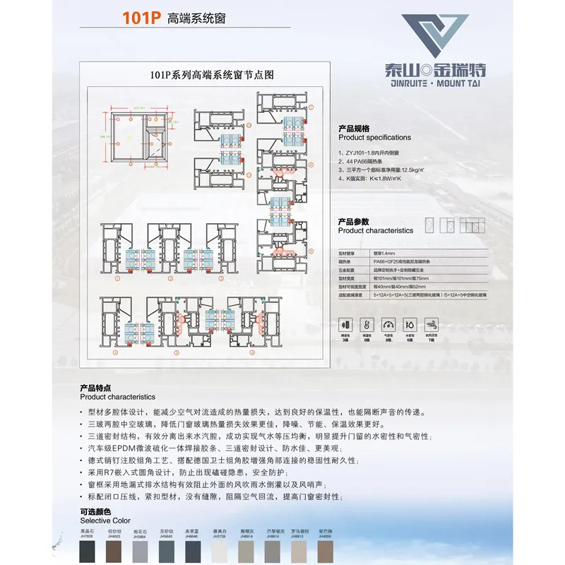 Флагманская система распашных окон двойного открывания, созданная для достижения максимальной производительности. Ширина рамы составляет 101 мм с сверхшироким терморазрывом 44 мм, а вес профиля достигает 12.5 кг/м², что обеспечивает исключительную структурную прочность. Тепловые характеристики превосходят обычные стандарты: измеренный коэффициент теплопередачи K ≤ 1.8 Вт/м²·K соответствует уровню пассивного дома. Система обеспечивает непревзойденную теплоизоляцию как с трёхкамерными (два воздушных зазора), так и с двухкамерными стеклопакетами. Интегрированная противомоскитная сетка типа «алмазная сетка» эффективно предотвращает проникновение насекомых. Премиальная комплектация гарантирует безупречную герметичность, водонепроницаемость и звукоизоляцию. Продукт разработан для экстремальных климатических условий, соответствия высшим стандартам энергоэффективности (например, пассивный дом) и проектов элитной недвижимости, требующих максимальной акустической защиты.