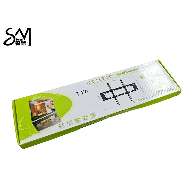 Плоское настенное крепление для телевизора T70 представляет собой вертикальное крепление для телевизора, специально разработанное для телевизоров большого размера. Самая большая особенность данного встраиваемого крепления для телевизора заключается в его высокой грузоподъемности. Усиленное настенное крепление для телевизора может выдерживать телевизор весом до 65 кг. Основание толщиной 1,6 мм гарантирует, что данная модель может стабильно нести телевизоры большого размера различных брендов. T70 является усиленным настенным креплением для телевизора, подходящим для большинства 40-80-дюймовых телевизоров на рынке, которое пользуется большой популярностью с момента своего запуска.