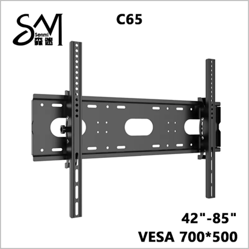 Модель крепления для телевизора C65 является одним из лучших внутренних креплений для телевизоров, которое подходит для экранов 42-85 дюймов. Данное настенное крепление для телевизора, которое перемещается вверх и вниз, является одним из самых крупных продуктов в нашей компании. С основанием толщиной 1,9 мм, крепление для телевизора большого размера достаточно прочное, чтобы стабильно нести телевизор весом до 100 кг. Максимальный подходящий стандарт VESA данного настенного крепления составляет 700*500 мм. Выдающаяся грузоподъемность является главным продающим пунктом данного наклонного крепления для телевизора. Большой телевизор должен быть оснащен большим креплением для телевизора, таким как наше крепление C65. Наклонное настенное крепление подходит для телевизоров 42-85 дюймов, в пределах VESA700*500, и весом менее 100 кг.