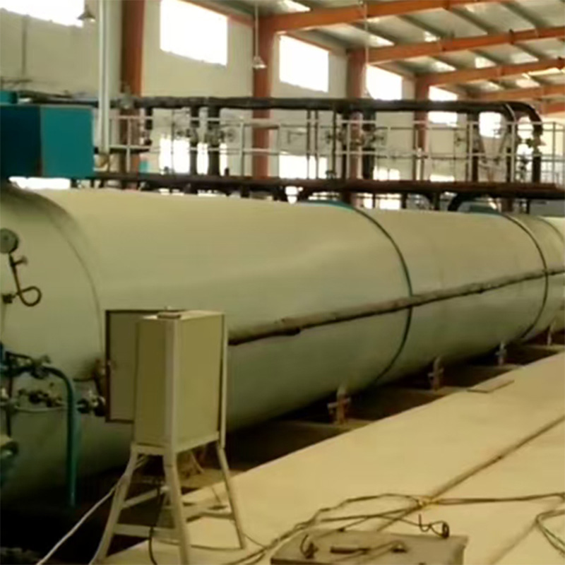 Штабель форм с заготовками проходит предварительное отверждение в камере предварительного выдерживания до достижения заданной прочности, после чего вакуумный демонтажный агрегат осуществляет снятие форм, и освобожденный штабель заготовок направляется в автоклав для термообработки под высоким давлением и температурой. В процессе автоклавной обработки происходит гидратационная реакция между кремнеземистыми и кальциевыми компонентами в плитах, в результате которой образуются кристаллы тоберморита C5S6H5 (основной гидратационный продукт) и связующая масса, формирующая искусственный камень с заданными прочностными характеристиками.
