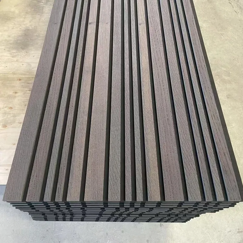 Деревянные акустические панели из МДФ — это функционально-декоративные панели, специально разработанные для оптимизации акустических условий. Их основу составляет плита МДФ высокой плотности, с высокой точностью нарезанная на объёмные рейки разной ширины и шага. С обратной стороны панель дополнена высокоэффективным звукопоглощающим материалом (таким как стекловата или полиэстеровое волокно), формируя двойную систему, которая сочетает функции декора и шумопоглощения. За счёт щелей между рейками и воздушной полости за ними данная конструкция эффективно улавливает и рассеивает звуковую энергию, значительно сокращает время реверберации, повышает разборчивость речи и устраняет эхо, создавая комфортную и сосредоточенную акустическую среду. Поверхность панелей может быть обработана натуральным шпоном, УФ-лаком, экологичными красками и другими покрытиями, что не только сохраняет тёплую текстуру дерева, но и позволяет гармонично интегрировать их в современный, индустриальный, минималистичный и другие стили оформления, достигая идеального баланса между акустикой и эстетикой. Монтаж осуществляется быстро и удобно — с помощью кликового крепления, профилей или клея. Панели широко применяются в помещениях с повышенными требованиями к акустике: конференц-залах, аудиториях, музыкальных классах, театрах, открытых офисах, ресторанах и домашних кинотеатрах, что делает их идеальным решением для повышения качества пространства и улучшения звукового опыта.