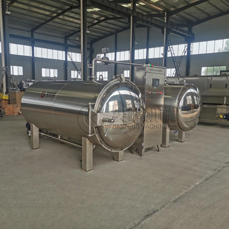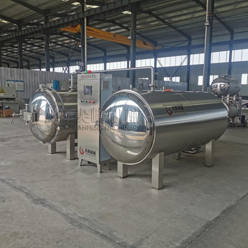 Бак для стерилизации: содержит продукты для стерилизации при высокой температуре и высоком давлении, обеспечивая равномерное проникновение тепла через систему циркуляции горячей воды.