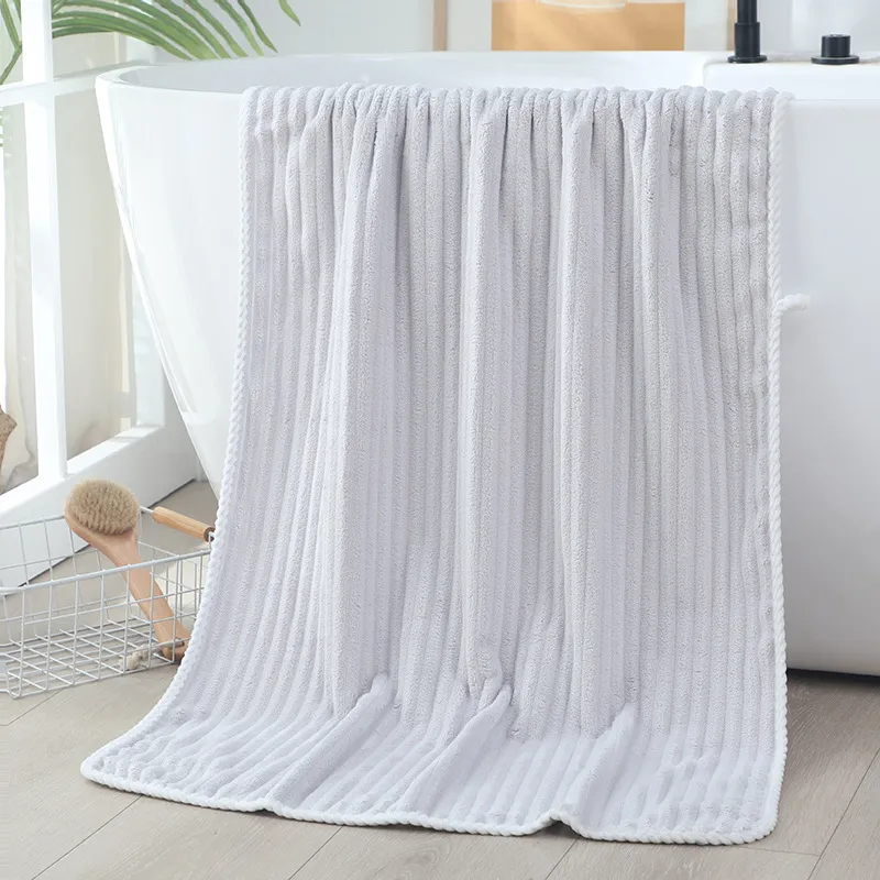 Популярное банное полотенце в полоску, быстросохнущее банное полотенце из кораллового флиса, утолщенное мягкое банное полотенце для пары