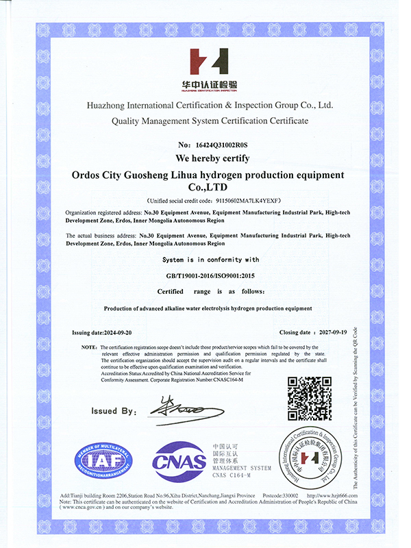 Большие системы производства водорода компании Гоусэнлихуа представляют собой комплексное решение по производству водорода, которое является лидером в отрасли. Эта система сочетает передовую технологию производства водорода с использованием электролизата воды и эффективную систему управления энергией, что позволяет обеспечить,стабильный и эффективный выпуск водорода.