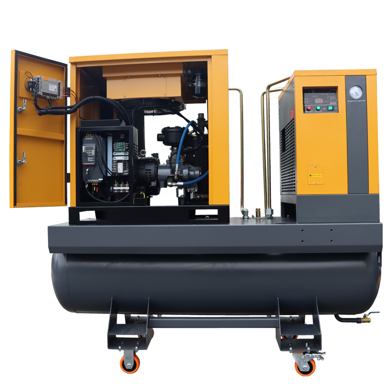 Недавно выпущенный винтовой воздушный компрессор с регулируемой частотой и постоянными магнитами «четыре в одном » удовлетворяет потребности в промышленном сжатом воздухе за одну остановку! винтовой компрессор с осушителем , винтовой компрессор с резивером , винтовой компрессор с осушителем и резивером и компрессор винтовой частоты в одном, мощность охватывает 4 кВт-22 кВт ( 5,5 л.с.-30 л.с. ), точно соответствует винтовой компрессор 5,5 кВт , 7,5 кВт , 11 кВт , 15 кВт , 22 кВт и другие основные модели, также поддерживают винтовой компрессор высотой 16 бар рабочее состояние под давлением, обеспечивающее всестороннюю мощность для обрабатывающей промышленности!