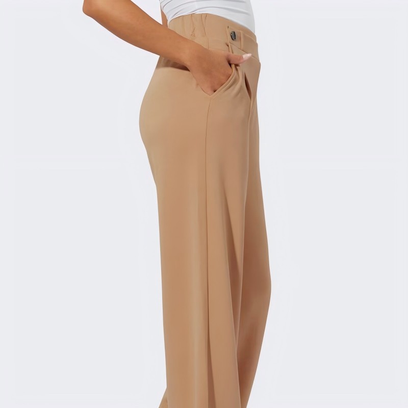 Эти брюки, изготовленные из высококачественной смеси 50% модала (Ленцинг™), 44% полиэстера и 6% эластана, обеспечивают исключительную мягкость и комфорт. Эластичный пояс дополнен декоративным поясом в тон и металлическими пуговицами цвета оружейной стали, что придает изделию изысканный вид. Благодаря деликатным вытачкам на талии и зауженным брючинам, они мягко облегают фигуру, создавая элегантный силуэт. Два незаметных боковых кармана и длина до щиколотки делают эти универсальные брюки идеальным выбором для любого сезона и случая — от повседневного стиля до офисного образа.