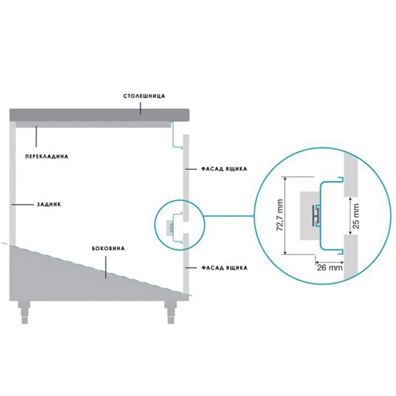 L-профиль используется для модулей, расположенных сразу под рабочей поверхностью (столешницей) мебельной конструкции