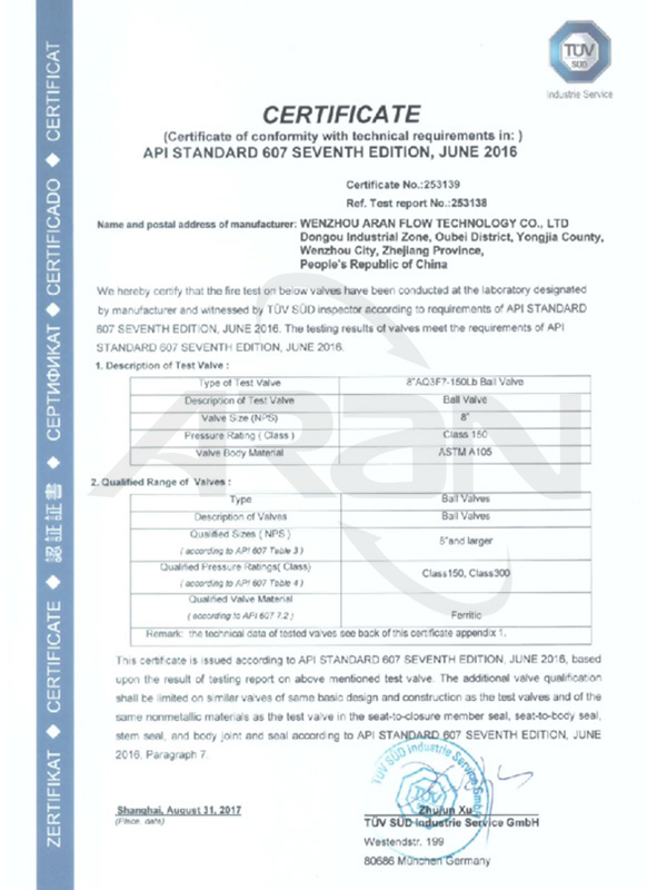 Испытания и контроль: API 598, API6D, ISO5208, EN12266-1