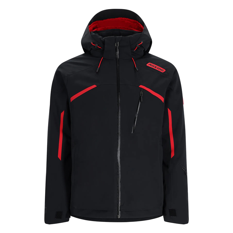 Основная ткань черного цвета имеет высококачественную фактуру, которая не только устойчива к загрязнениям и истиранию, но и сохраняет отличный внешний вид в самых разных условиях. Красное украшение в виде принта добавляет ярких красок в общую картину, делая лыжную одежду яркой и индивидуальной. Принт имеет уникальный дизайн, который не перегружен и демонстрирует ваш уникальный вкус. Использование водонепроницаемых молний гарантирует, что снег не проникнет внутрь во время катания, эффективно защищая внутреннюю одежду от высыхания. Ткань обладает отличными водонепроницаемыми характеристиками, которые легко справляются с непогодой на снежном поле, блокируя дождь и снежинки. В то же время хорошая воздухопроницаемость позволяет не чувствовать духоту во время напряженных тренировок, всегда ощущая комфорт. Горнолыжная куртка скроена по фигуре и эргономична, что обеспечивает свободу движений, не стесняя их. Внутренняя часть наполнена высокоэффективным термоматериалом для сохранения тепла в холодных условиях. Имеется несколько практичных карманов для мобильного телефона, перчаток и других мелких предметов, которые легко достать в любой момент.