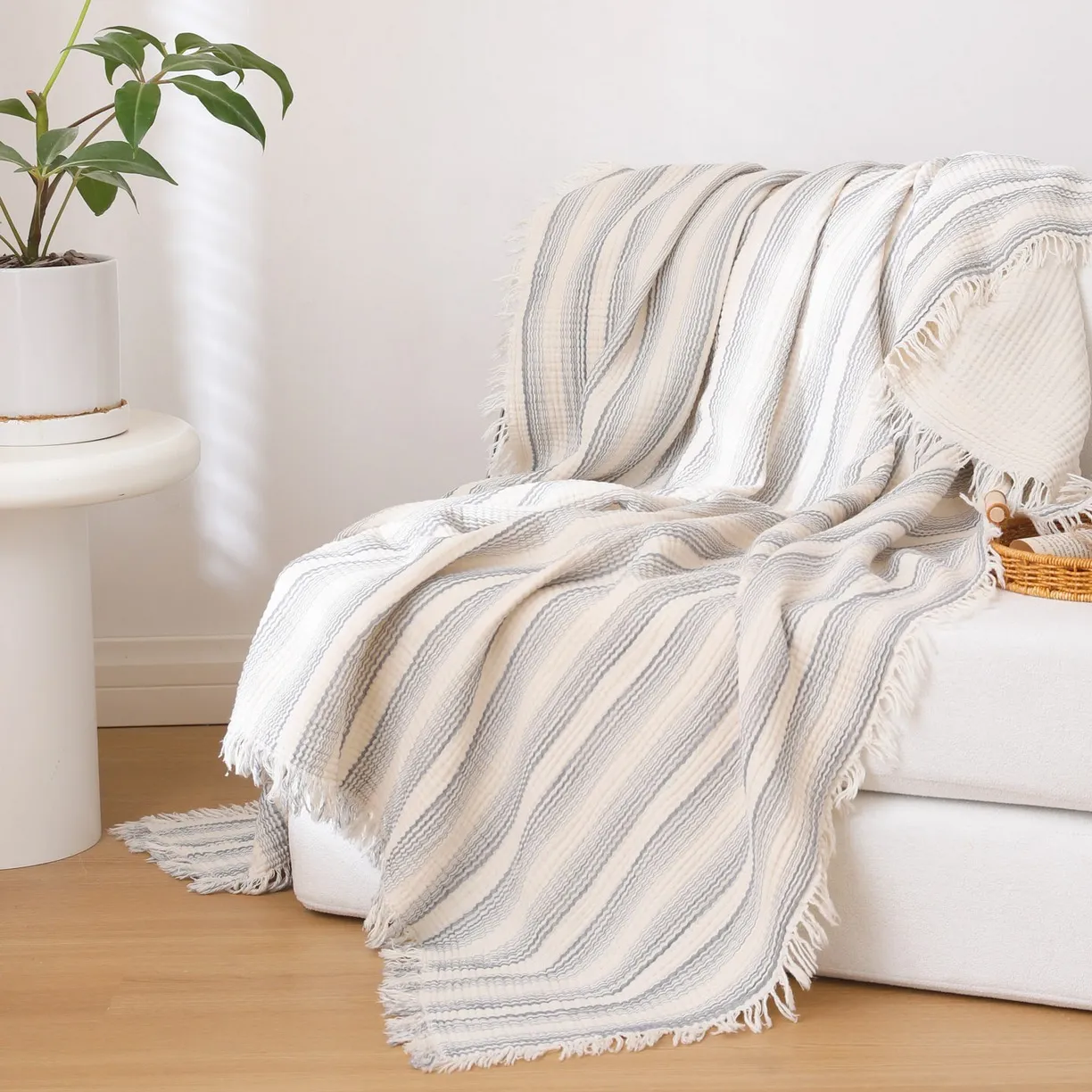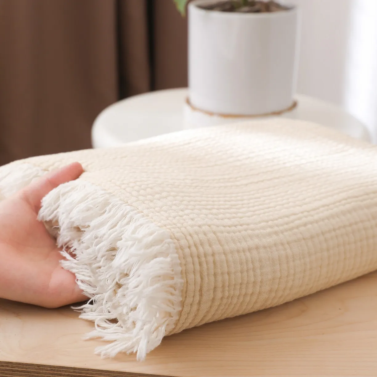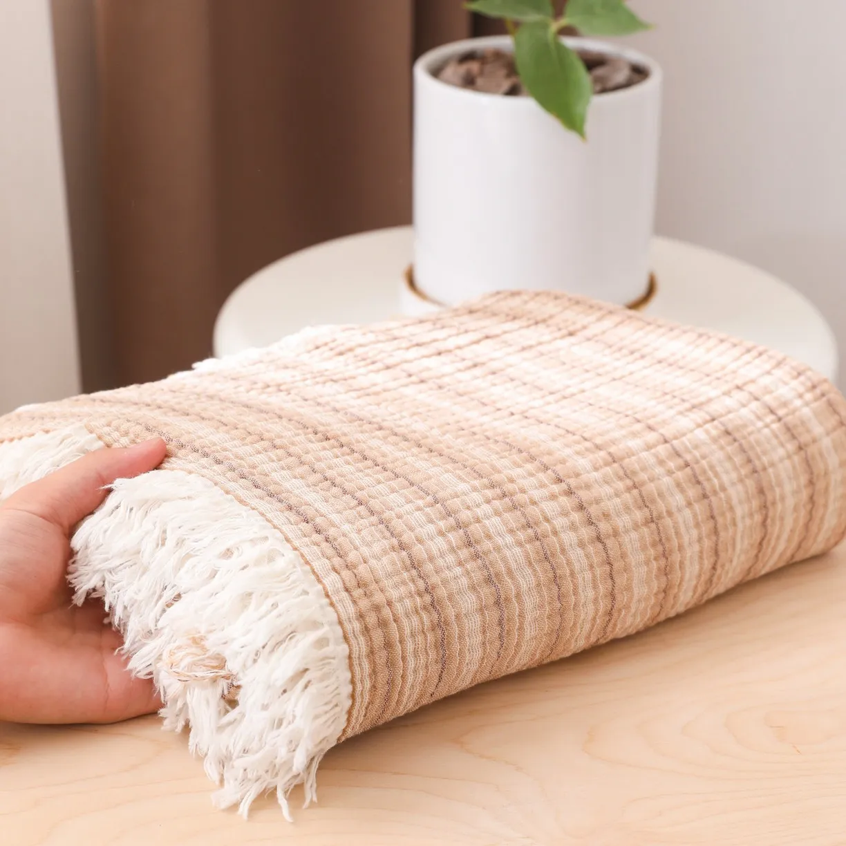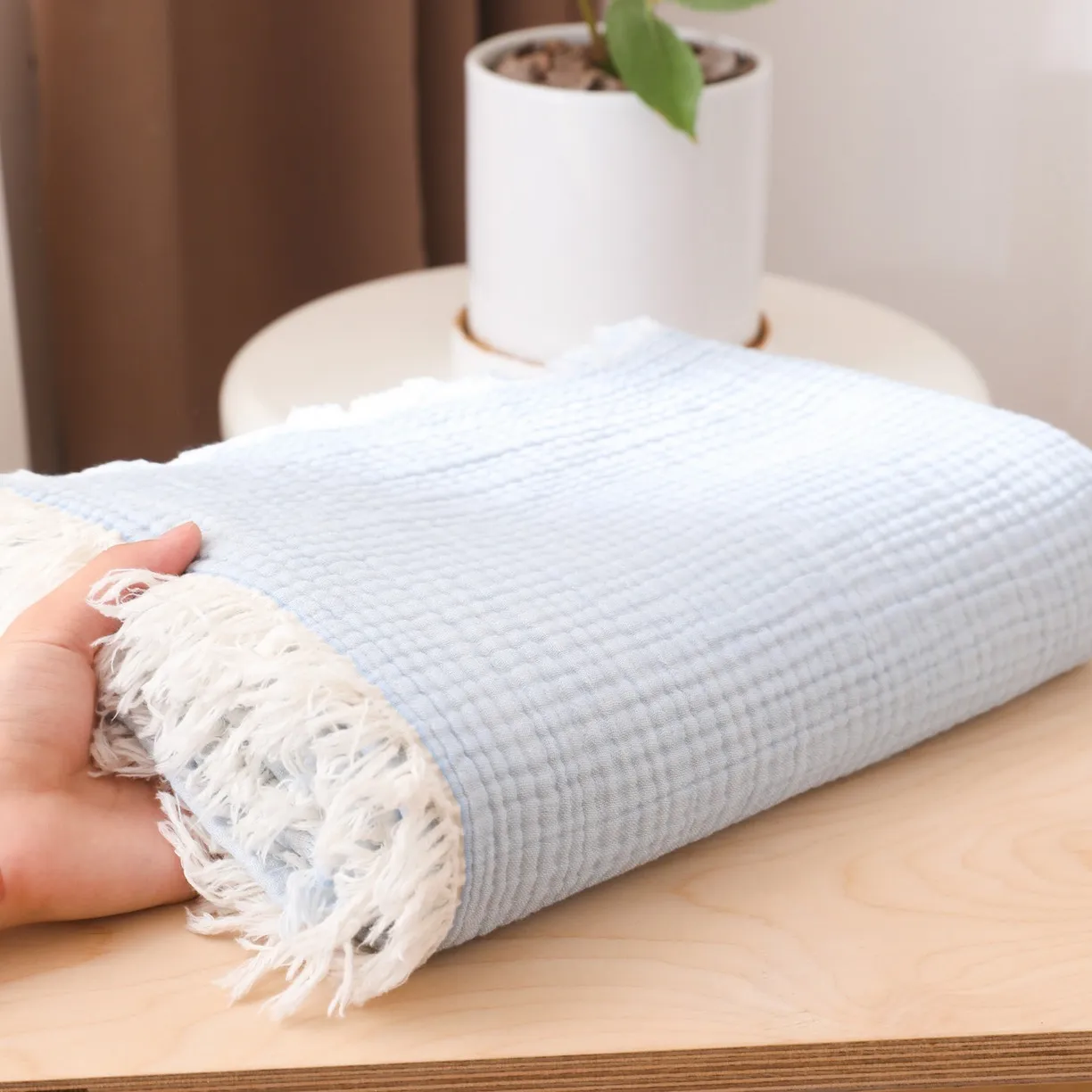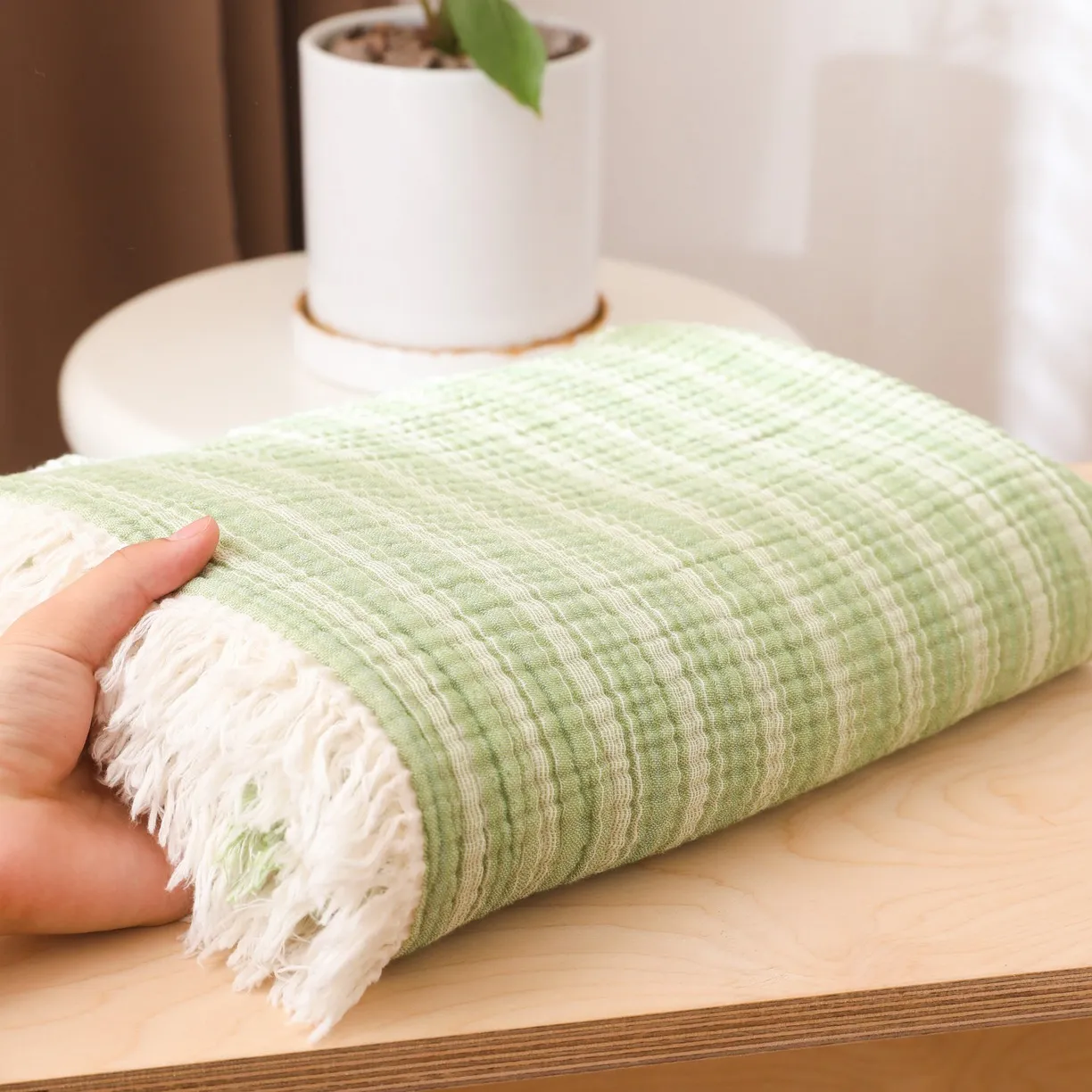 Четырёхслойный хлопковый плед с бахромой