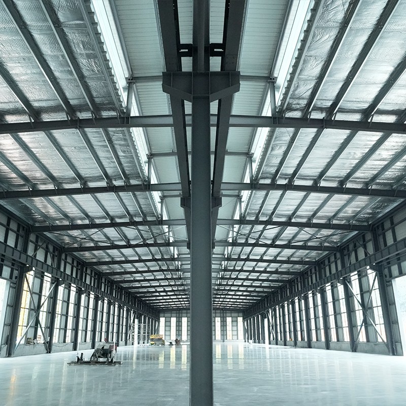 В Цех стальных конструкций используется высококачественная сталь для изготовления основного каркаса, а стальные балки и стальные колонны тесно подогнаны друг к другу, чтобы создать стабильную и прочную структурную систему. Обладая отличной прочностью на сжатие и изгиб, она способна выдерживать огромные нагрузки, обеспечивая постоянную стабильность завода при длительном использовании.
