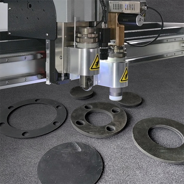 Автоматическая машина для резки прокладок с ЧПУ и пневматическим резаком с колебательным ножом — это промышленная цифровая система резки для различных прокладок, включая пробковые резиновые прокладки, неасбестовые прокладки, резиновые прокладки, графитовые уплотнительные прокладки, армированные прокладки без загрязнения воздуха, без обожженных краев, промышленная автоматическая машина для резки прокладок с ЧПУ также может резать ткань, кожу, картон, пластик, бумагу, резину, губку и пену