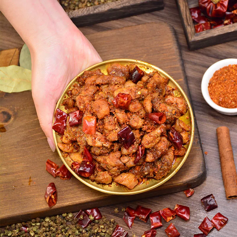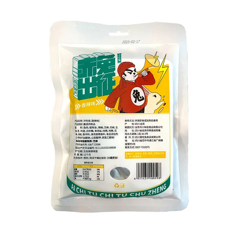 Сначала на языке взрывается острота, а затем онемение от перца, создающего насыщенный, но нежный вкус. При тщательном разжевывании раскрывается идеальное сочетание нежности кролика и насыщенности специй, вкус которого становится всё насыщеннее с каждым кусочком, без малейшего намека на сухость или жёсткость. Компактная порция весом 98 г идеально подходит для того, чтобы носить её с собой: быстро перекусить во время рабочего перерыва, перекусить за просмотром сериала или поделиться с друзьями в дороге.