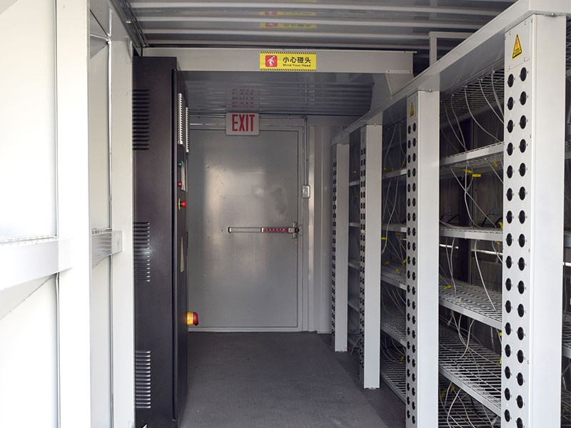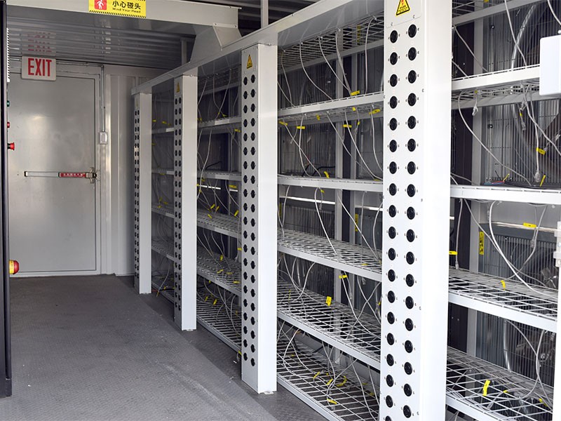Внешний размер этого шахтного ящика составляет 5900мм * 2200мм * 2200мм.Внутри помещается горнодобывающая машина модели S19, а полка состоит из 6 слоев.На каждом этаже можно разместить по 28 горных машин.Всего в коробке размещено 168 горных машин.
