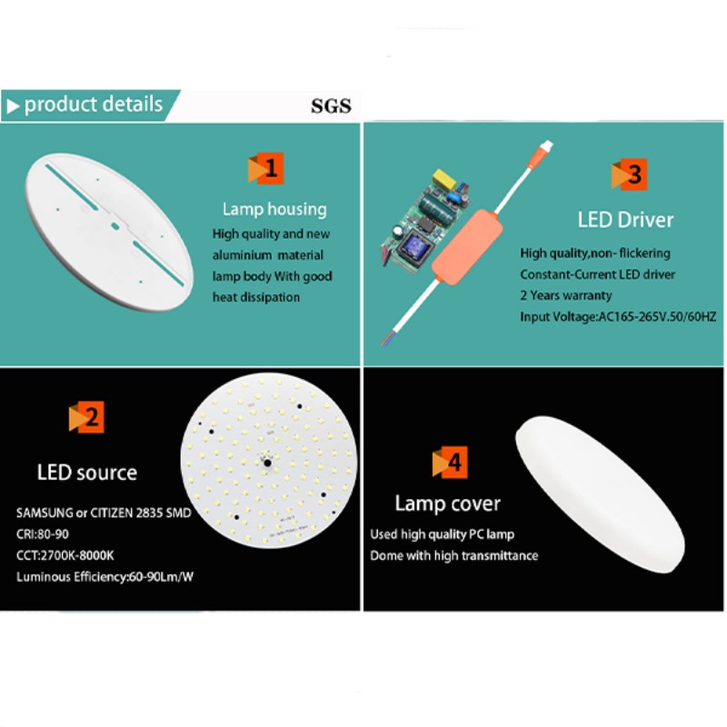 Это означает, что, обеспечивая пользователей достаточным освещением, он также может значительно сократить счета за электроэнергию и активно реализовывать концепции защиты окружающей среды. Благодаря точной оптической конструкции достигается мягкий свет без видимого мерцания, что может значительно снять зрительное утомление, вызванное длительной нагрузкой на глаза, и создать максимально комфортную световую среду для пользователей. Доступны различные цветовые температуры от 2700 К до 10000 К, а также обычные мощности (9 Вт, 16 Вт, 24 Вт, 36 Вт, 46 Вт) для индивидуальной настройки в соответствии с потребностями различных сценариев.