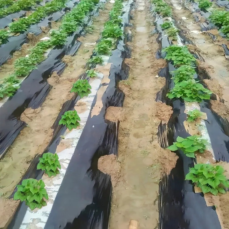 Белая сторона: Высокое светопропускание (80%-90%), быстро повышает температуру почвы на 2-3°C, сохраняет влагу и сокращает испарение (снижение испарения более 50%).