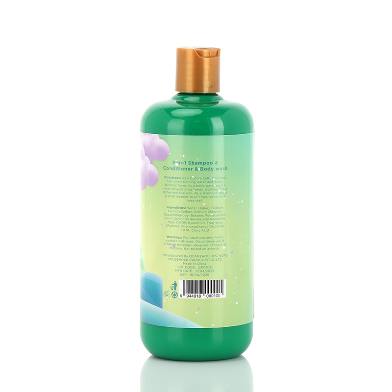 Функция 3-в-1: шампунь + кондиционер + гель для душа. Мягкое очищение с одновременным питанием волос и кожи. Время купания сокращается на 50%!