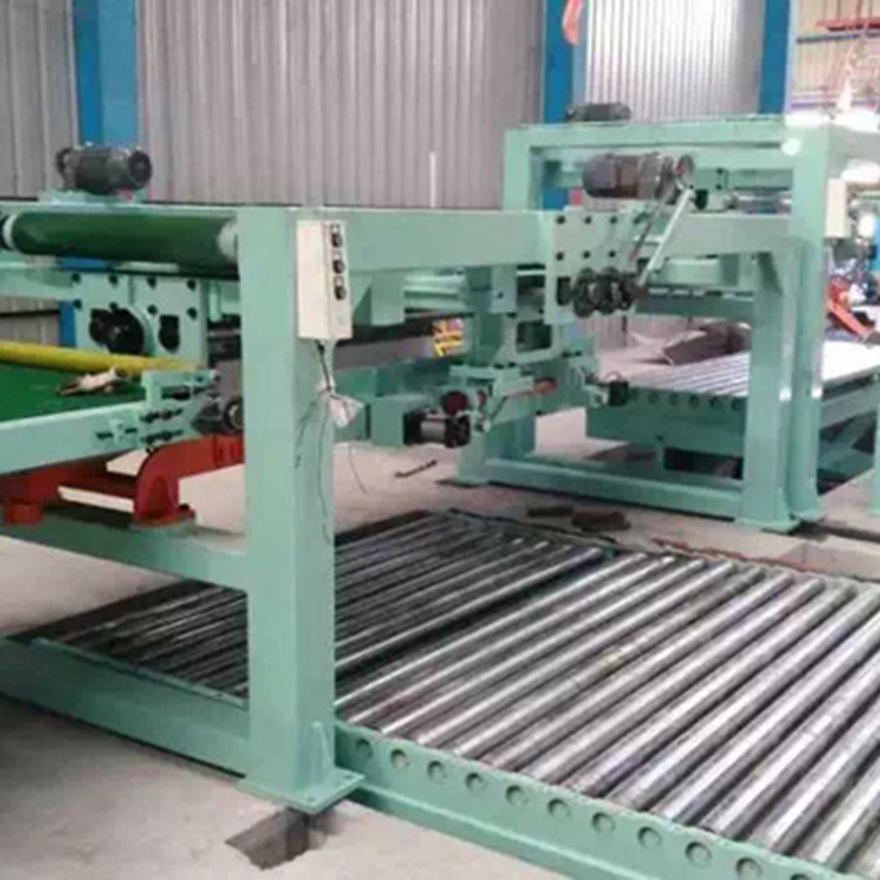 Когда оборудование находится в рабочем режиме, разматыватель остается в состоянии подачи. После того, как листовой материал поступает в правильные машины, боковой механизм поступает в устройство определения длины с ЧПУ. Устройство определения длины с ЧПУ фиксируется назад в соответствии с заданной длиной. Когда подача с ЧПУ достигает заданной длины, летучие ножницы немедленно отрезают листы. А отрезанные листы отправляются на сборную стойку и аккуратно укладываются через транспортное устройство. Подъемная платформа укладочной стальной пластины может автоматически уменьшаться с увеличением высоты укладочной стальной пластины; Когда количество уложенных стальных листов достигнет установленного значения сенсорного экрана, поверните переключатель вручную, чтобы переключить конвейер на второй укладчик. В это время ручное управление опускает подъемную платформу и выводит уложенные листы, чтобы быть в режиме ожидания для следующего рабочего цикла. При резке одного рулона большого размера это может гарантировать непрерывную работу и повысить эффективность.
