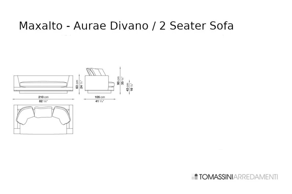 2-местный диван: ширина 82« 5/8 дюйма, глубина 41» 3/8 дюйма, высота 24" 3/4 дюйма (210x105x63h см)