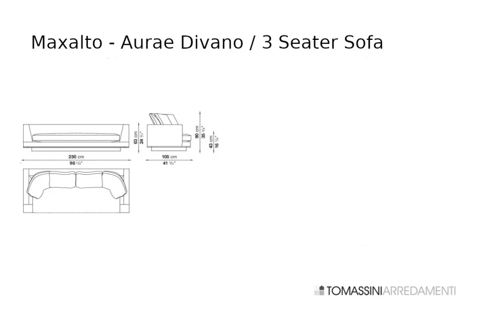 Трехместный диван: ширина 98« 3/8 дюйма, глубина 41» 3/8 дюйма, высота 24" 3/4 дюйма (250x105x63h см)