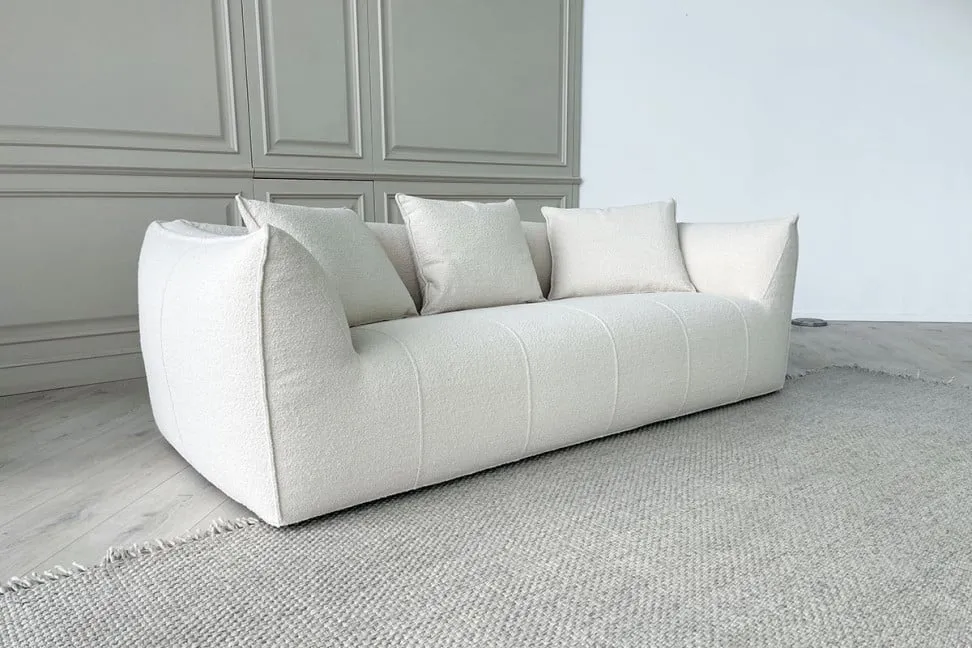 Диван Granbambola, представленный в нашем выставочном зале, имеет полностью съемную белую тканевую обивку, которая еще больше подчеркивает элегантный дизайн дивана. Кроме того, диван комплектуется тремя подушками с такой же обивкой, что обеспечивает максимальный комфорт во время отдыха.