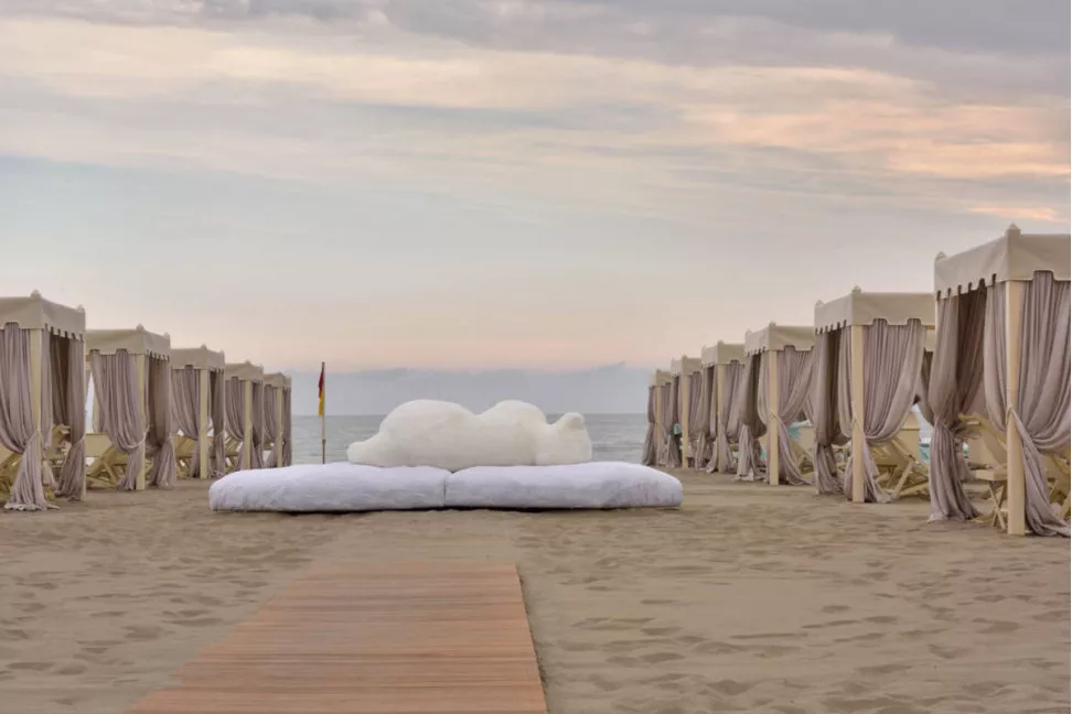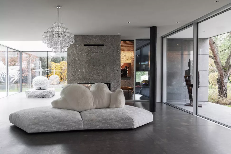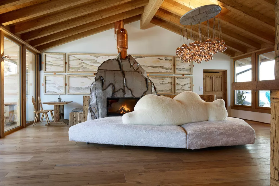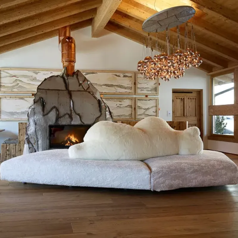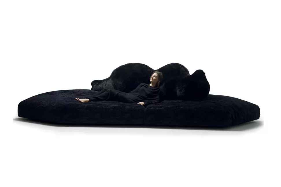 Это действительно экстравагантная и удивительная работа, известная своим оригинальным и смелым дизайном. Диван Pack создан по мотивам ледяного тороса, напоминающего сюрреалистический полярный пейзаж. В центре этой необычной композиции лежит на боку большой белый медведь, служащий уютной спинкой и выразительным элементом дизайна. Основание дивана Pack представляет собой детализированное изображение ледяного тороса, покрытого тканью, созданной специально для этого дивана, с текстурой, напоминающей слои льда и создающей уникальные тактильные ощущения.