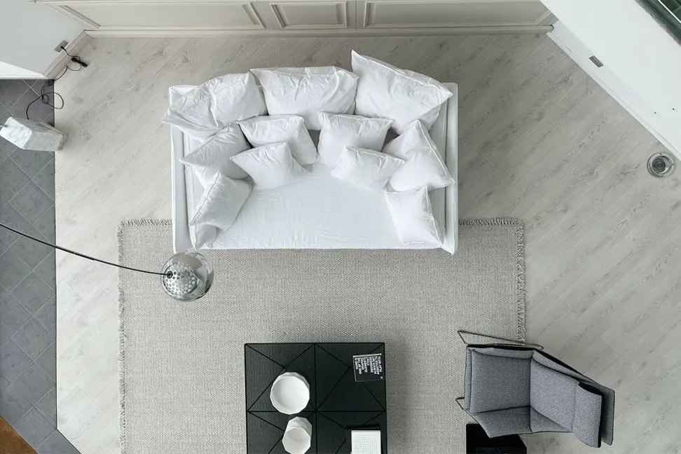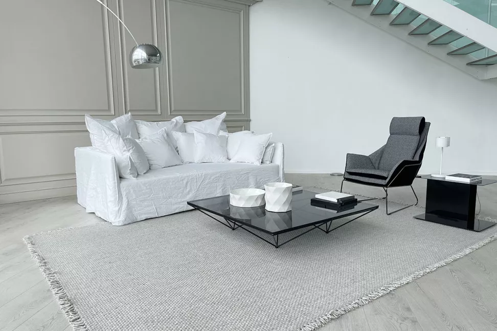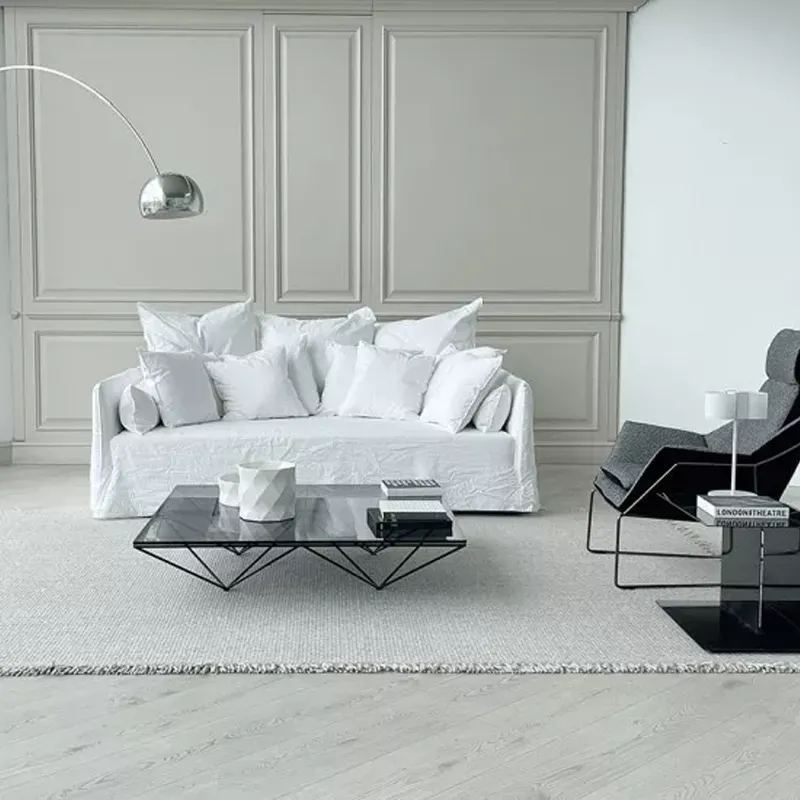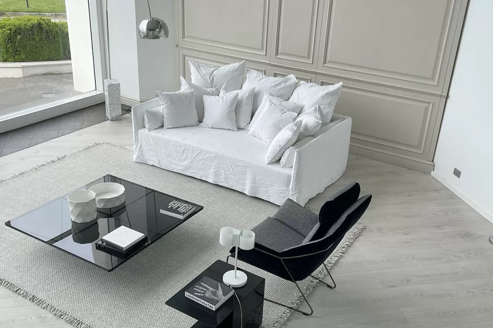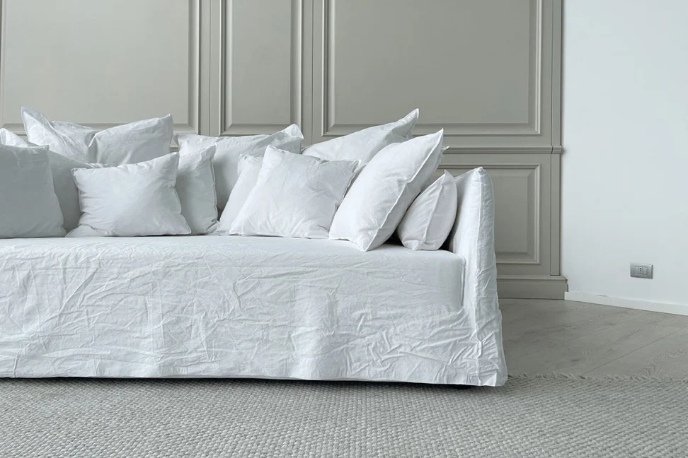 Диван «Призрак» изготовлен из многослойного и массивного дерева с набивкой из полиуретановой пены. Чехол полностью съемный. Модель Ghost также включает в себя подушки для спинки, подушки для подлокотников и в общей сложности восемь отдельных подушек: 4 подушки 60x60 см и 4 подушки 50x50 см.