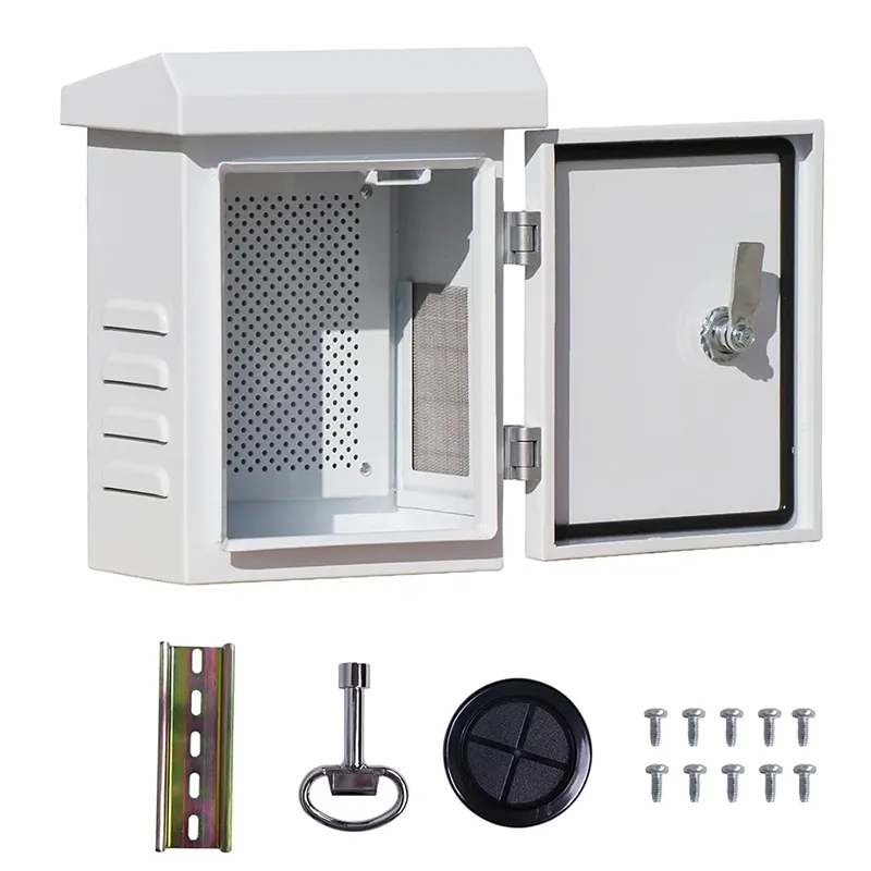 Наружный водонепроницаемый электрошкаф - 9.1 * 11.6 * 5.7 дюймов, электрошкаф из оцинкованной стали со съемной монтажной панелью и вентиляционным отверстием с жалюзийным вентилятором (23 * 29.5 * 14.5 см)