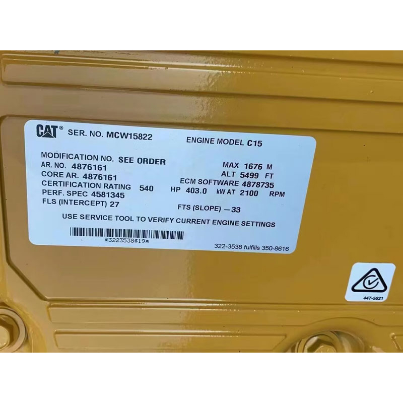 Спецификация масла: обычно требуется высококачественное дизельное моторное масло, соответствующее спецификациям Cat ECF - 3, API CJ - 4 или ACEA E9, с объемом двигателя около 48,4 л.