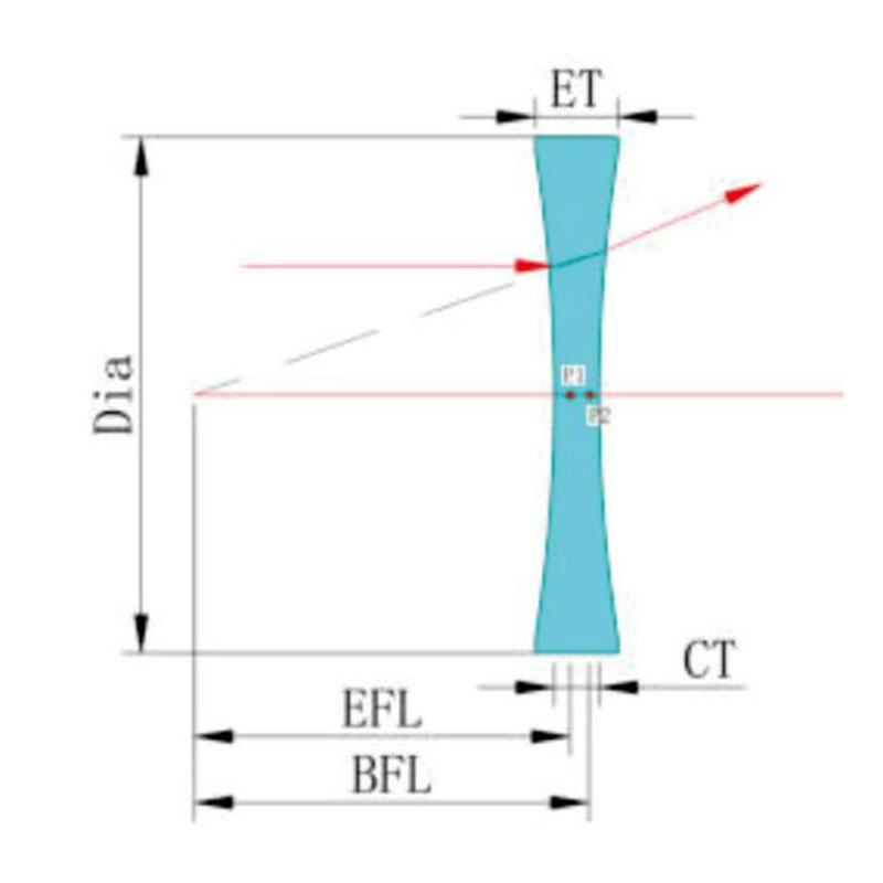 Двояковогнутая линза — это линза, у которой обе стороны вогнуты и имеют одинаковый радиус кривизны и отрицательное фокусное расстояние. Обычно используется для коллимации луча, увеличения (уменьшения) фокусного расстояния или увеличения (уменьшения) изображения.