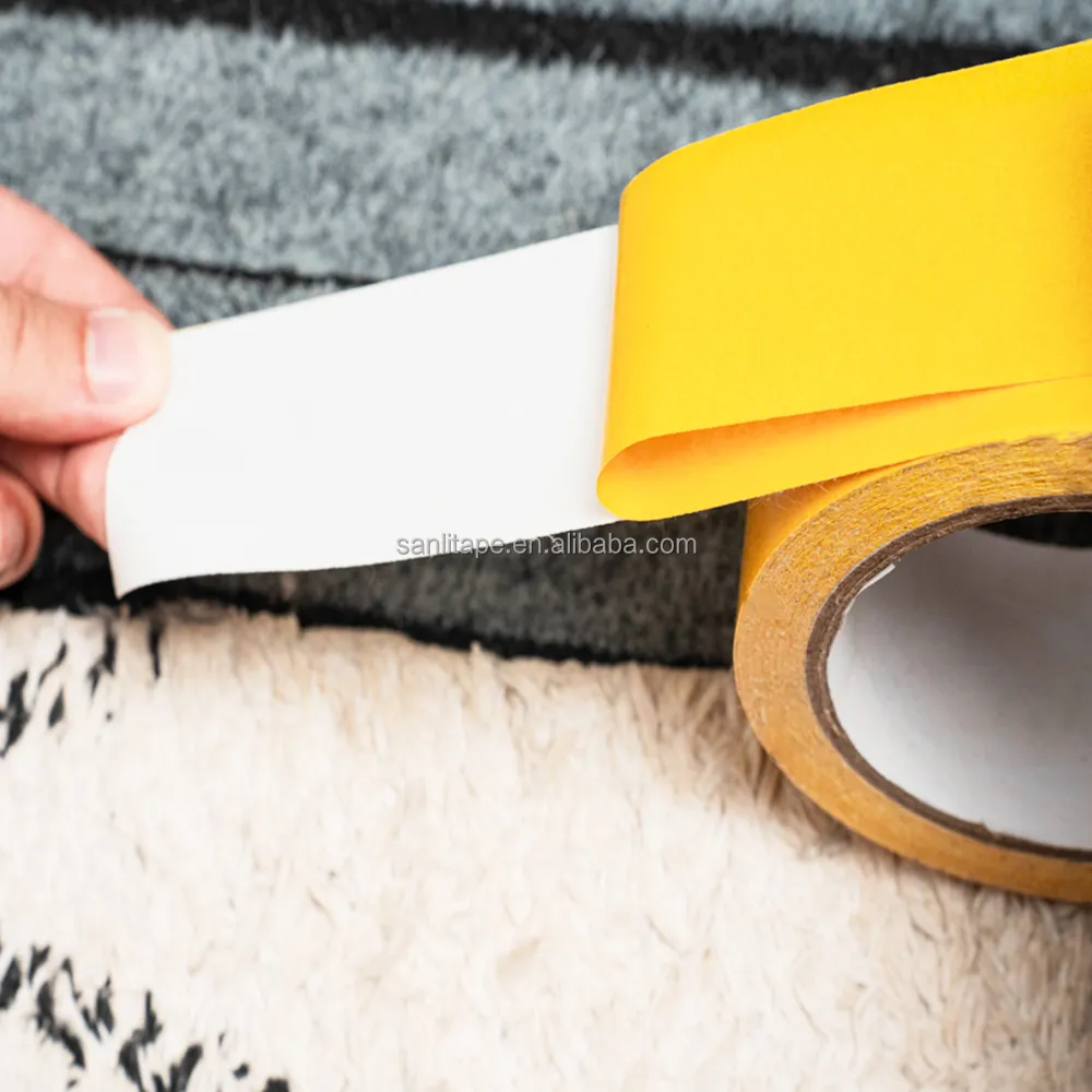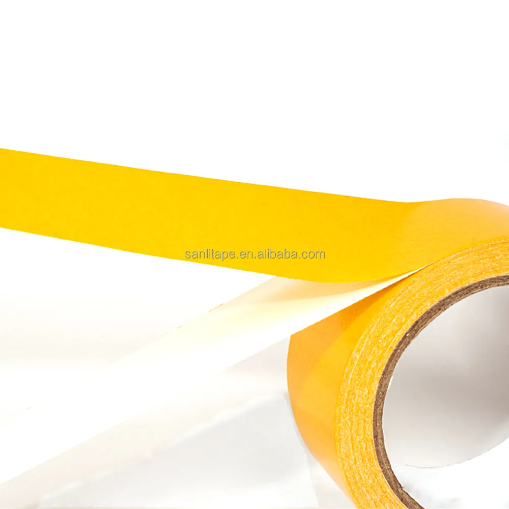 Двусторонние ленты тканевые на тканевой основе изготавливается с использованием хлопчатобумажной ткани или ткани из синтетических волокон в качестве основного материала, с нанесением чувствительного к давлению клея на обе стороны. Она имеет белую бумагу с силиконовым покрытием, бумагу из пергамина цвета куркумы и толстый клеевой слой. Она обеспечивает прочное сцепление, отличные динамические характеристики и широко используется в строительной отрасли и для крепления ковров.