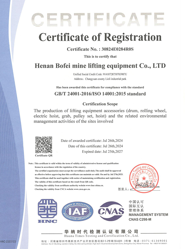 В начале работы поддерживающий канат поднимает часть ковша в нужном месте, затем опускает открытый и закрытый канат, когда ковш открывается центром по большой оси балки ниже самоходного ковша нижней балки, а при столкновении блоков, открытых от ковша до двух ушей, ковш открывается до максимального предела. При вскрытии ковша увеличивается центральное расстояние между шкивом верхней балки и шкивом нижней балки, затем поддерживается падение каната, уже открытый грейфер падает на рыхлое скопление, которое нужно захватить, а затем убирается и обходит закрытый канат, центр шкива верхней балки и шкива нижней балки возвращается в исходное положение, тем самым завершается процесс захвата материала.В закрытом отсеке ковша заполнен материалом, и, наконец, поднят открытый и закрытый канат, весь грейфер также поднят, перемещается на необходимое место разгрузки, и ковш разгружает захваченный материал.
