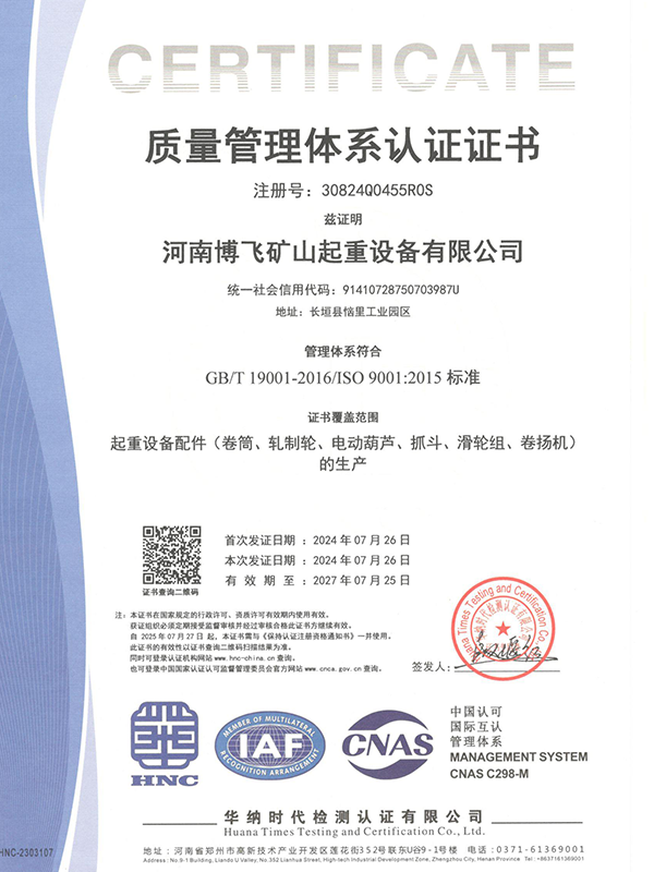 На различных кранах, оснащенных двумя наборами моторных барабанов (т.е. электрических талей), каждый из которых выводит канат, один из которых скомпонован на обоих концах балансира грейфера для поддержки, а другой канат проходит через шкив верхней балки и шкив нижней балки. Составьте блок шкивов, откройте и закройте роль ковша.