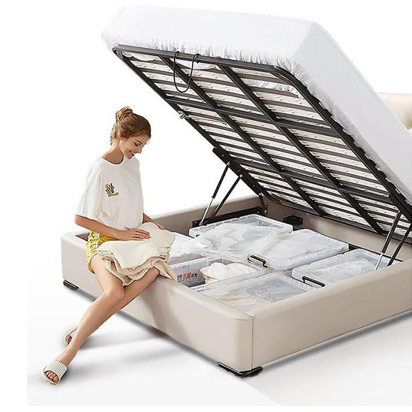 Главное преимущество данной модели — параллельная система с двумя рычагами, которая равномерно распределяет вес и нагрузку по обе стороны кровати. Даже при полном заполнении ящика тяжёлыми предметами — зимними одеялами, большими чемоданами и прочими габаритными вещами — механизм обеспечивает плавный и стабильный подъём без необходимости удерживать основание от раскачивания, повышая безопасность эксплуатации.