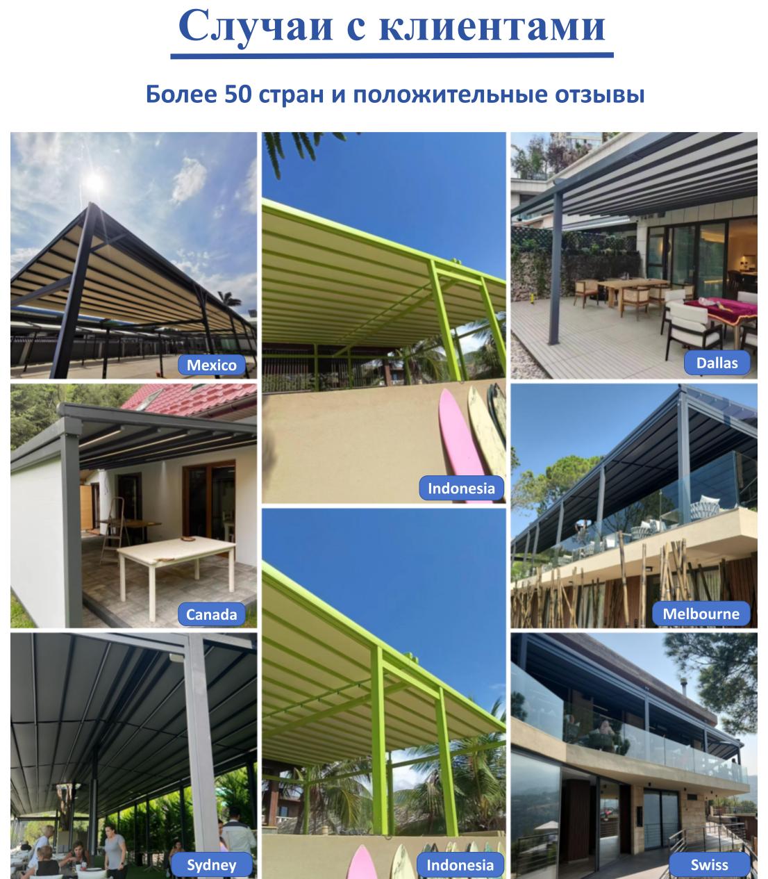 Экономичная наружная выдвижная крыша-пергола с водонепроницаемым и солнцезащитным навесом моторизованная с дистанционным управлением