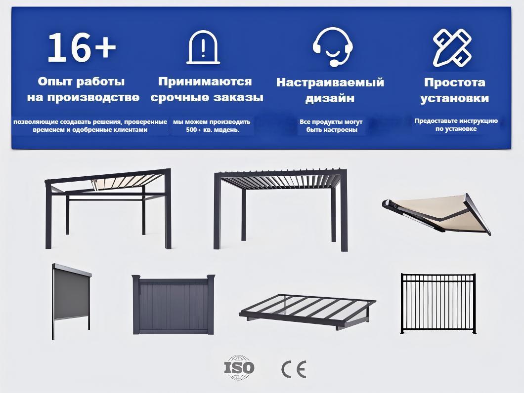 Многофункциональность:этот тент служит в качестве солнцезащитного парусного навеса и моторизованного тента-перголы, обеспечивая комфортное открытое пространство для отдыха и развлечений.
