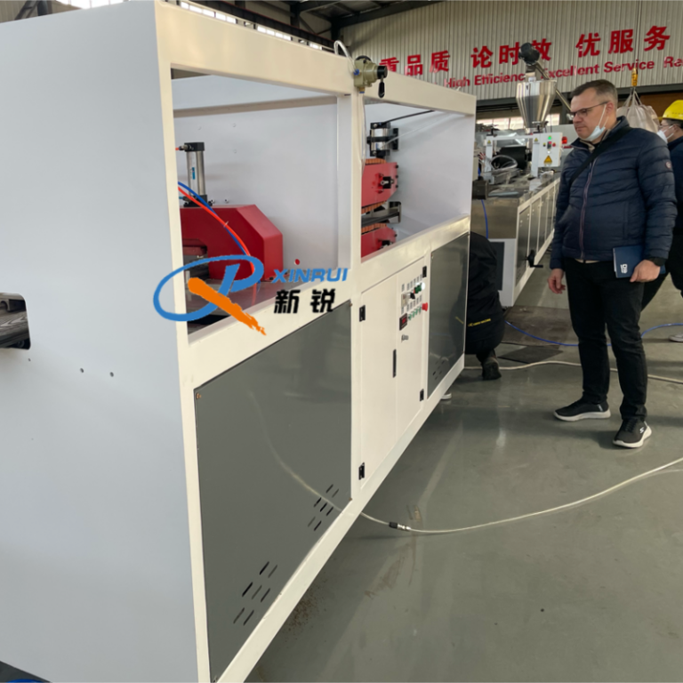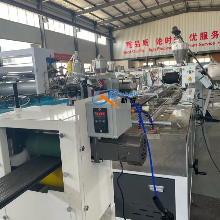 --Машина для изготовления полов из ДПК в основном состоит из шнекового питателя, конического двухшнекового экструдера, пресс-форм, вакуумного установочного стола, станка для резки, штабелера.
