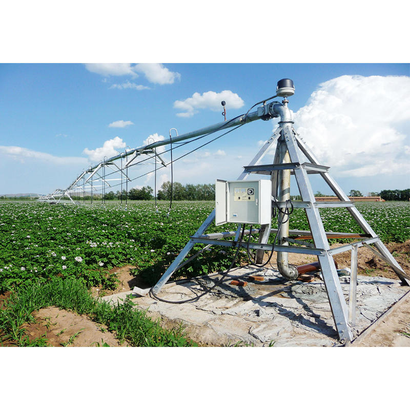 Центральный шкаф управления установлен на центральной опоре. Через токоприемное кольцо он подает питание на башенные ящики, приводя дождевальную машину в действие. Центральный шкаф управления является командным центром работы дождевальной машины, реализуя функции системного управления, защиты, обнаружения и сигнализации. С помощью таймера процентного соотношения, установленного на передней панели центрального шкафа управления, регулируется соотношение времени движения и остановки машины в течение одной минуты, тем самым регулировка скорость движения машины и достигая цели регулировки интенсивности дождя.