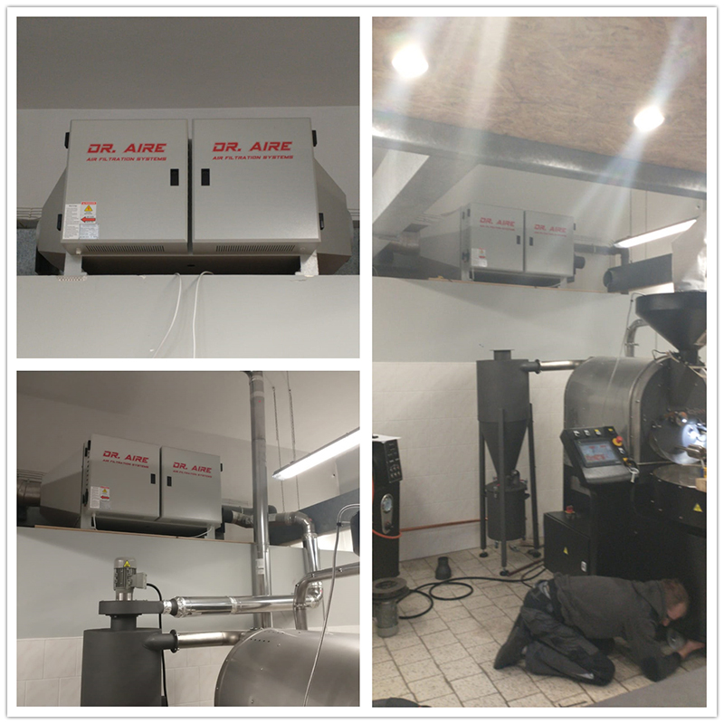 Загрязненный дым от обжарщика партии в 1 кг не слишком серьезен, но партии более 5 кг, дым от глубокой обжарки достаточен, чтобы задохнуться. Необходимо установить электростатический фильтр, чтобы уменьшить дым.