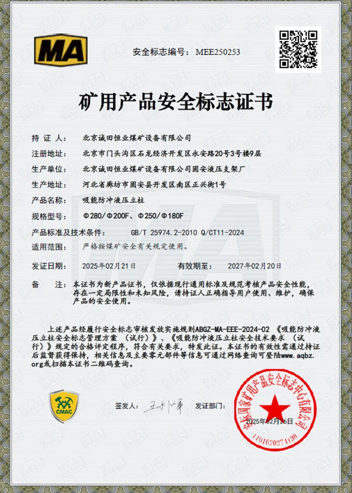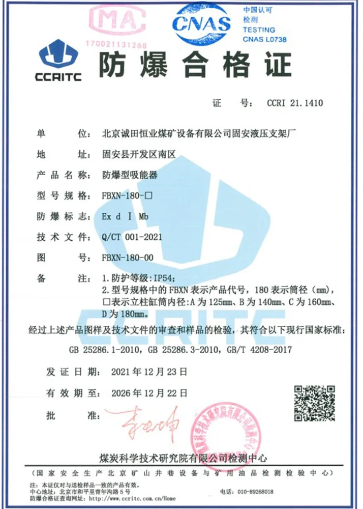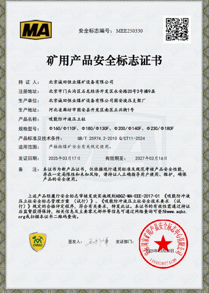 3.Сфера применения: Для использования в составе гидравлических крепей на подземных угольных шахтах, подверженных динамическим проявлениям горного давления (горным ударам).