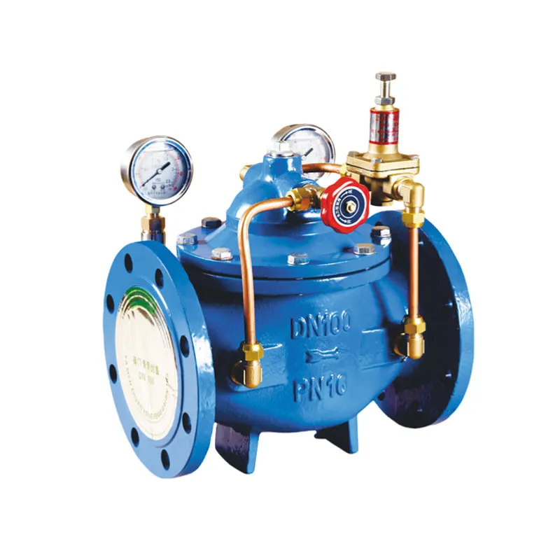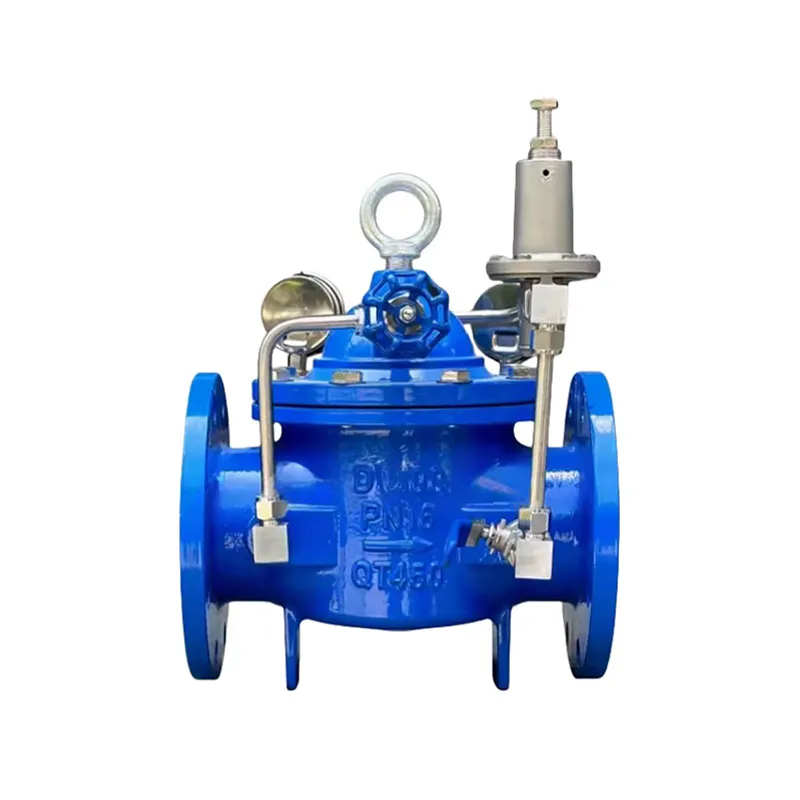 Фланцевый редукционный клапан, это ключевой клапан для контроля давления трубопроводной среды, в системах водоснабжения и водоотведения, пожарной и других системах играет ключевую роль. Его основной корпус часто бывает синего цвета, через фланец и трубопроводное неразъемное соединение, корпус клапана, заслонка клапана, пружина, регулировочные болты и другие компоненты. Корпус клапана в основном изготовлен из высокопрочного ковкого чугуна или литой стали, с сильным сопротивлением сжатию; заслонка клапана и уплотнения изготовлены из высококачественной резины, нержавеющей стали и т.д., с хорошими уплотнительными характеристиками. При работе, среда поступает в корпус клапана, заслонка клапана автоматически регулирует открытие в зависимости от заданного значения давления, входное давление повышается, заслонка клапана закрывается, уменьшая расход, снижая экспортное давление; входное давление снижается, заслонка клапана открывается, чтобы поддерживать стабильное экспортное давление, для защиты нижележащего оборудования и трубопроводов в безопасном диапазоне давления. Преимущества клапана - точная регулировка давления, сильная устойчивость к гидроударам, простота обслуживания, удобная замена уплотнений, длительный срок службы и т.д. Это идеальный выбор для обеспечения стабильной работы трубопроводных систем.