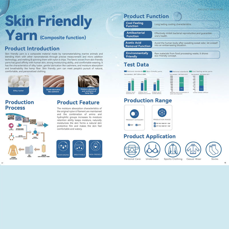 Нежная для кожи пряжа – это композитный материал, изготовленный путем наноматериализации морских животных и смешивания их с другими наноматериалами с использованием точной дозировки и технологии микродобавления, а также плавления и прядения с нейлоновой крошкой 6.