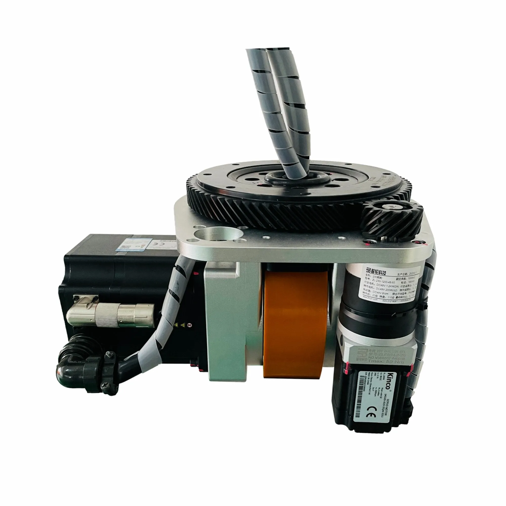 Это горизонтальное рулевое колесо имеет усиленную конструкцию и изготовлено из высококачественных материалов, что позволяет выдерживать вертикальную нагрузку до 1150 кг на колесо, что значительно превышает грузоподъёмность обычных рулевых колес. Высокий крутящий момент обеспечивает плавный старт, разгон и торможение AGV даже при полной загрузке, позволяя легко справляться с грузами весом более одной тонны.