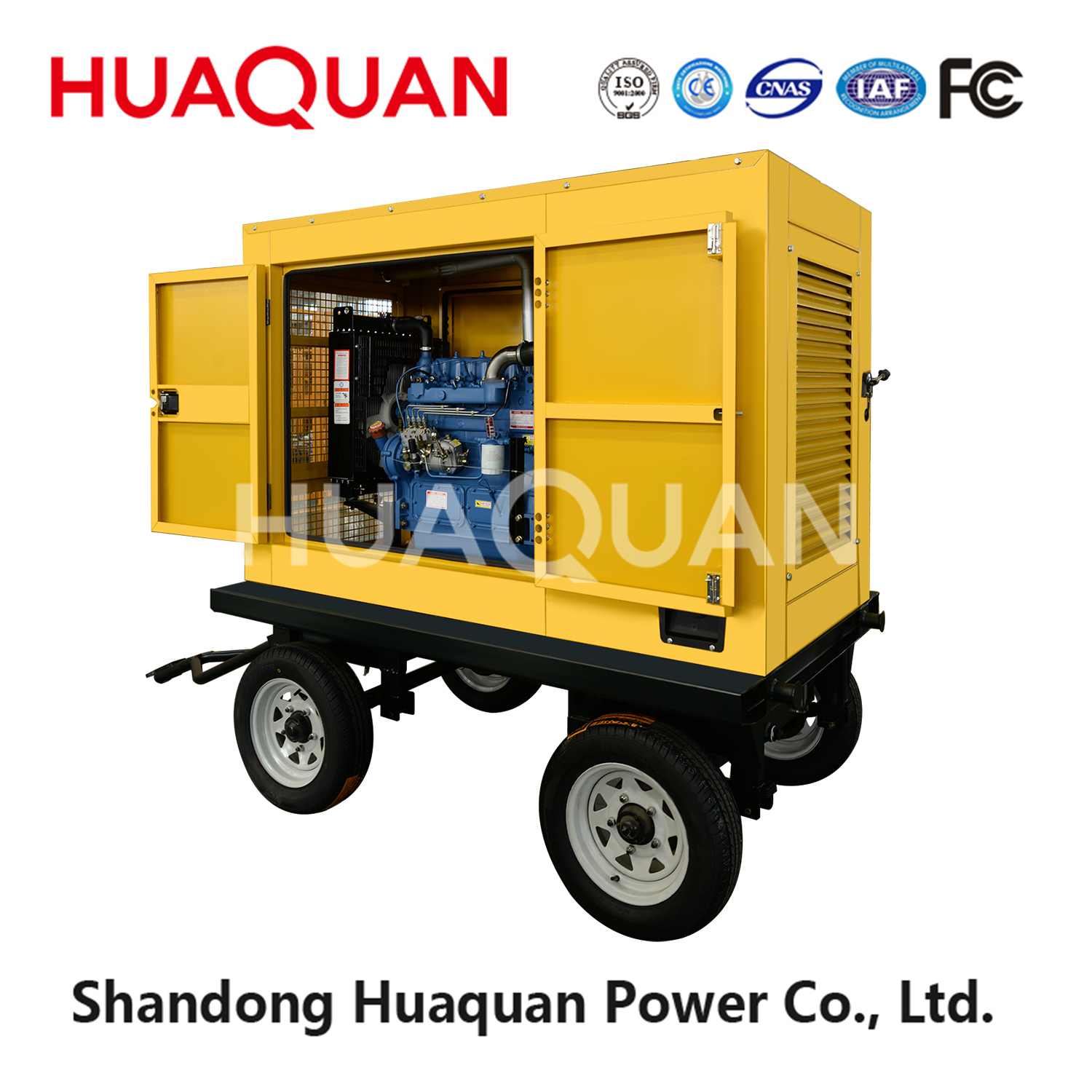 Huaquan 30кВт мобильная прицепная дизель-генераторная установка с четырехступенчатой системой защиты