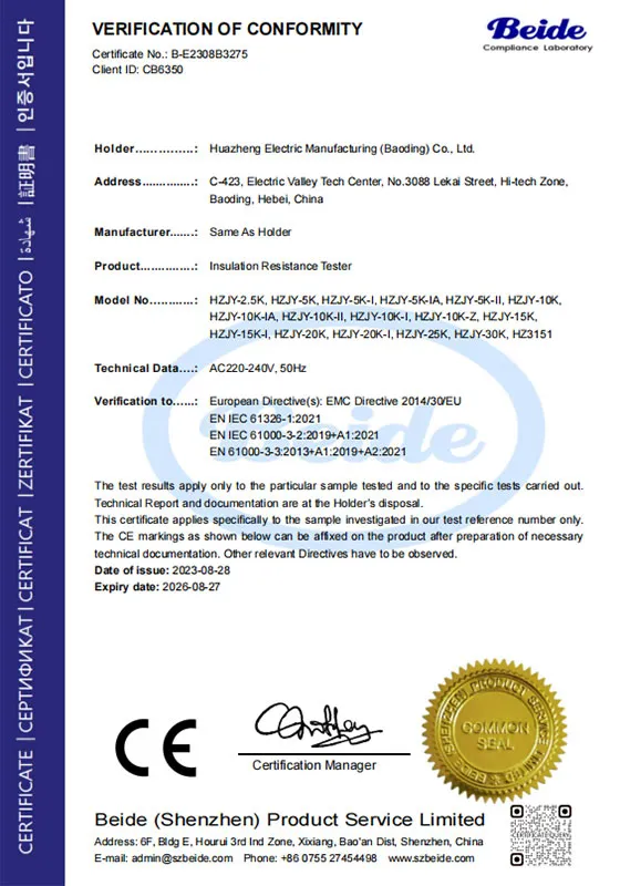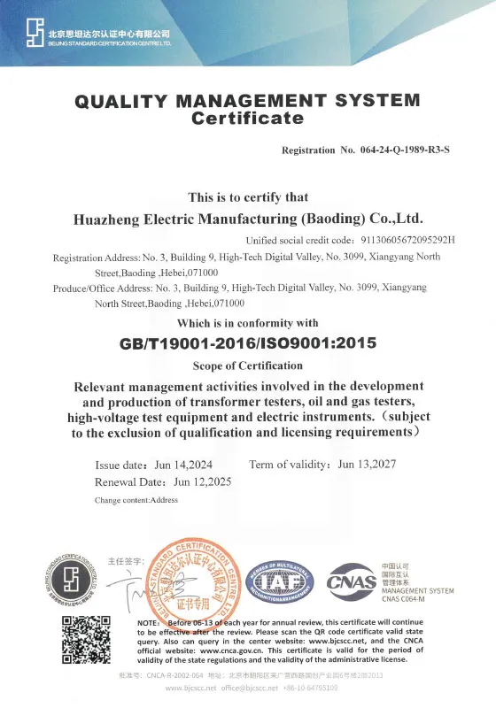ООО «Баодин Хуачжэн Электрик Мануфэкчеринг»Основанная в 2008 году, эта профессиональная компания с более чем 50 сотрудниками специализируется на исследованиях, разработке, продажах и обслуживании тестеров трансформаторов, тестеров трансформаторного масла, тестеров релейной защиты, высоковольтных тестеров и тестеров автоматических выключателей. Девиз компании: «Немного дороже, лучше и безопаснее». Основной деятельностью компании является производство, изготовление и продажа электрооборудования и измерительных приборов.