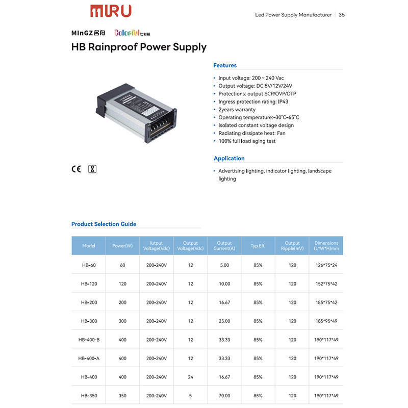 HB-350 350 200-240V 5 70.0 85% 120 190*117*49