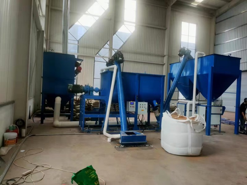 После смешивания материалы автоматически подаются в резервуар с помощью вспомогательного элеватора, а затем точно упаковываются в пакеты упаковочной машиной. Весь производственный процесс не требует простоев, а производительность за единицу времени значительно превышает производительность одной машины, что существенно повышает эффективность производства.